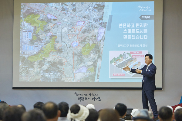 그러면서 “민선 8기의 핵심 가치 중 하나는 ‘균형 발전’”이라고 강조하며, “아산의 변방으로 여겨졌던 둔포는 이제 새롭게 태어나고 있다. 읍 승격은 물론, 도시개발, 학교 신설 등 획기적 변화를 통해 새로운 아산의 대변지가 될 것”이라고 밝혔다.