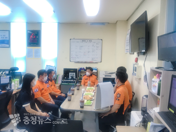 특히 코로나-19의 재확산에 따른 개인감염방지와 혹서기 직원 격려 물품을 전달하며 하반기 인사이동으로 다소 어수선 할 수도 있는 상황에 지역의 안전을 책임지는 출동부서로서 집중력을 갖고 본연의 업무에 임해주길 당부했다.