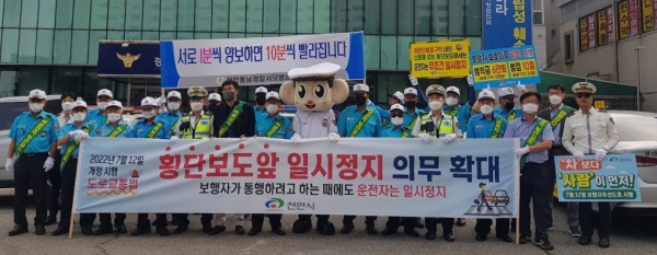 [충청뉴스 박동혁 기자] 충남 천안시는 22일 동남구 남부오거리 앞에서 ‘횡단보도 앞 일시정지’ 집중 캠페인을 펼쳤다.