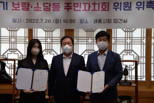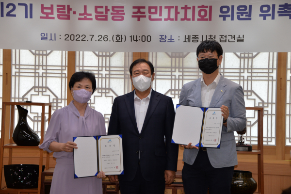[충청뉴스 최형순 기자] 최민호 세종시장은 26일 시청 접견실에서 7월 임기를 시작한 ‘제2기 보람·소담동 주민자치회 위촉식’을 개최했다.
