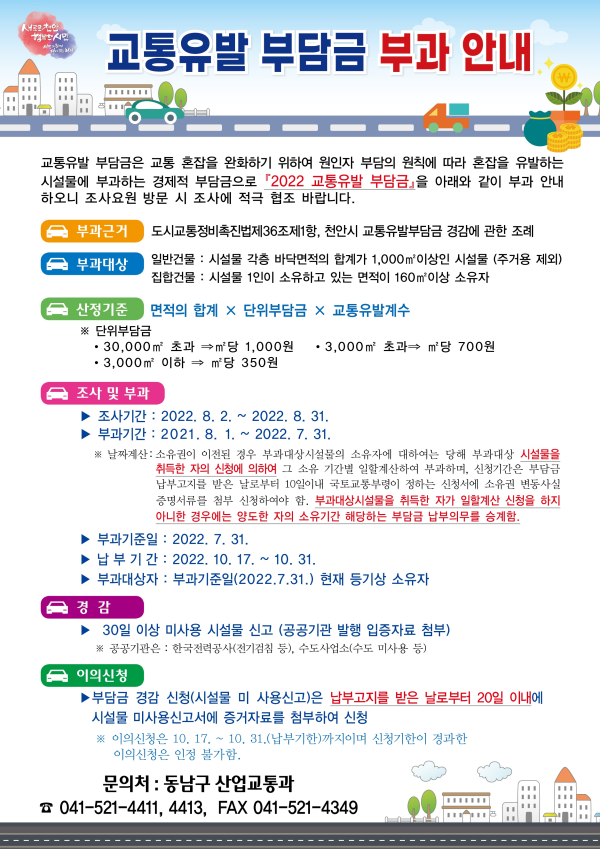 교통유발 부담금 부과 안내문/천안시 제공