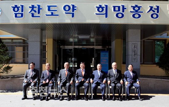 ▲ 김석환 現 홍성군수를 비롯한 역대군수들이 한자리에 모여 기념사진 촬영을 가졌다.