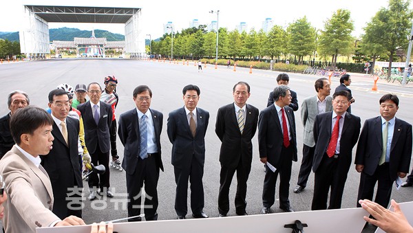 대전광역시의회 행정자치위원회(위원장 황웅상)는 엑스포 남문광장에 조성된 무빙쉘터를 방문해 공연장관련 업무보고를 청취한 후 공연장 조명시설을 둘러보았다.