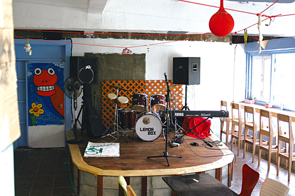 직장인밴드를 비롯한 그녀의 지인들이 기증한 드럼, 기타, 키보드로 꾸민 반타원형 무대. ‘열린 무대’가 특징인 이곳은 어느, 누구나의 무대가 될 수 있다. 어떤 날은 알려지지 않은 인디밴드 공연이 있는가 하면 혹은 그날 처음 만난 손님들의 즉석 공연이 벌어지기도 한다. 무대도 있겠다, 손님 모으기에 좋은 정기공연을 생각해볼 만하건만 정기공연은 싫단다.