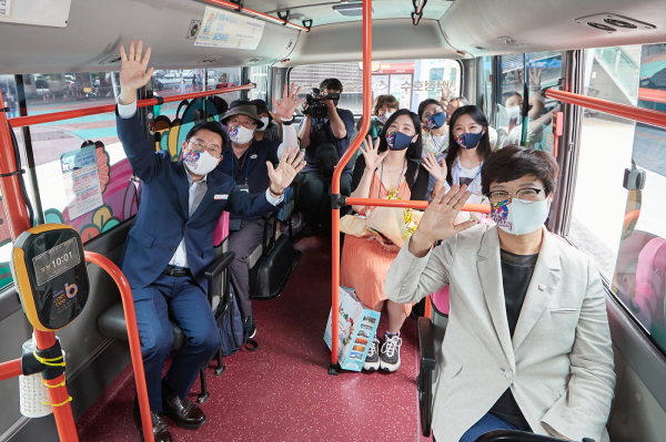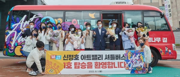 신정호 아트밸리 순환버스 ‘1호 탑승 기념 이벤트’ 기념사진/아산시 제공