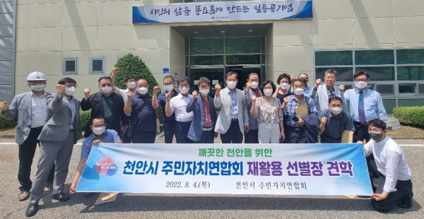 조경호 천안시주민자치연합회장은 “견학을 통해 우리가 순간의 편함을 위해 무의식적으로 했던 행동들이 얼마나 큰 비용 부담을 발생시키고 있는지 두 눈으로 확인할 수 있었다”며, “앞으로 우리 주민자치가 주도해 깨끗한 천안시를 만들고 재활용 인식 개선에 앞장서겠다”고 밝혔다.