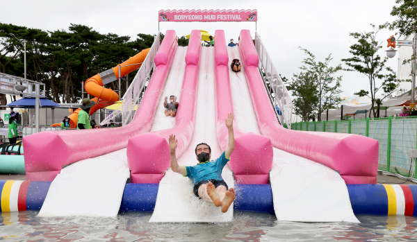 [충청뉴스=보령 조홍기 기자] 김동일 보령시장이 2022보령해양머드박람회의 성공적 개최를 기원하며 머드슬라이딩 퍼포먼스를 선보였다.