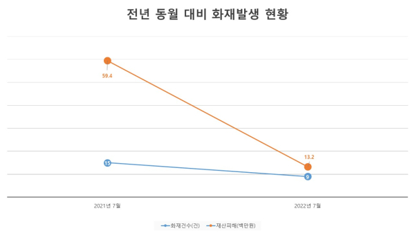 작년 동월 대비 화재 건수와 재산피해액은 큰 폭으로 감소했지만, 부주의에 의한 화재가 상대적으로 많았던 이유는 휴가철 유동인구 증가와 야외 활동이 많아진 이유로 분석됐다.