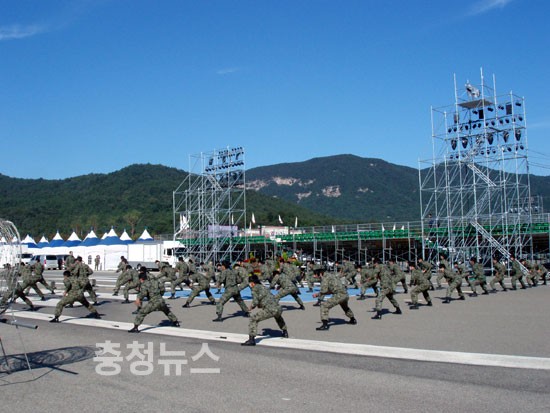 축제를 주관하는 (재)계룡군문화발전재단에 따르면 5일 개막해 9일까지 계룡대 비상활주로 일원에서 개최되는 ‘2011계룡군문화축제’ 준비를 위해 20만㎡의 행사장에 군악·의장, 특공무술 등의 공연을 위한 3천명을 수용할 수 있는 주 공연장 설치를 완료했다.