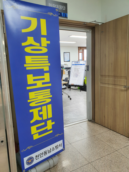 [충청뉴스 박동혁 기자] 천안동남소방서는 10일 02시 30분 천안지역에 호우경보가 발효됨에 따라 재난상황 선제적 대응을 위해 ‘기상특보 통제단’ 운영에 나섰다.