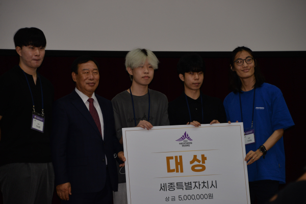 이날 대상은 숭실대 ’ASC‘ 팀, 박성준 팀장을 비롯한 박상준, 이든솔, 문형일 팀원이 최민호 세종시장상을 수상했다.