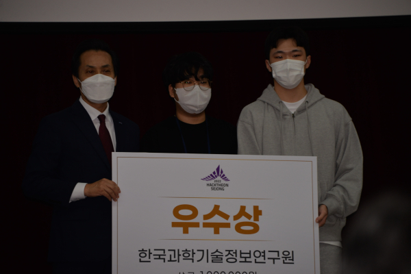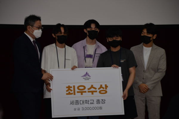 혼성팀 ’문제구경하러 왔습니다‘ 팀, 세종대 배원욱 팀장을 비롯한 국민대학교 강준혁, 고려대학교 이도현, 부산외국어대 장종민 팀원이 세종대학교 총장상을 수상했다.