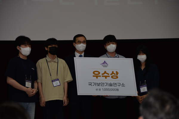 우수상은 한국과학기술원 ’kaisTheon‘ 팀, 최동민 팀장을 비롯한 김범수, 김준태, 최유빈 팀원이 이원태 한국인터넷진흥원장상을 수상했고,