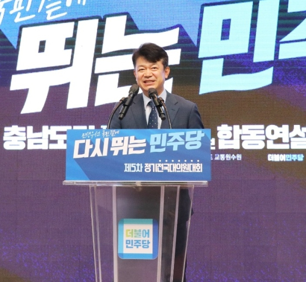 민주당 충남도당은 이날 오전 10시 충남 공주시 소재 충남교통연수원에서 정기대의원대회를 열고, 충남도당위원장에 단독 입후보한 복기왕 위원장을 선출했다.