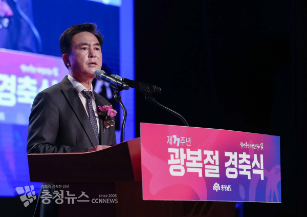[충청뉴스 김정식 기자] 김태흠 충남지사가 15일 도청 문예회관에서 열린 제77주년 광복절 경축식에서 “77년 전, 선열들의 숭고한 희생으로 자유와 평화의 민주공화국이 열렸다”라며 선열과 독립유공자에 대한 깊은 존경과 감사의 뜻을 표했다.