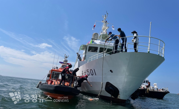 이날 훈련은 도 병원선과 보령시, 중부지방해양경찰청, 보령해양경찰서 등 유관기관이 참여한 가운데, 보령시 원산도 인근 해역에서 이뤄졌다.