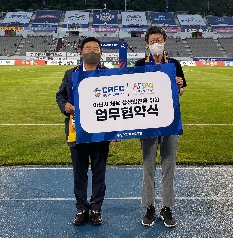 [충청뉴스 박동혁 기자] 아산시장애인체육회는 지난 17일 이순신종합운동장에서 충남아산프로축구단과 아산시 체육 상생발전을 위한 업무협약을 체결했다.
