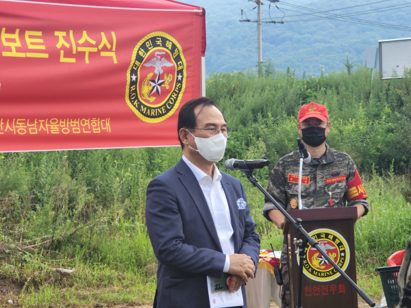앞서 박 시장은 작년 12월 해병대 천안전우회로부터 '명예해병'으로 위촉됐고, 수변 정화 활동을 위한 고무보트 등의 지원을 약속한 바 있다.