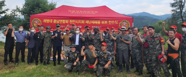 [충청뉴스 박동혁 기자] 해병대 천안전우회는 20일 천안시 목천읍 용연저수지에서 재난재해용 보트 진수식을 열었다.