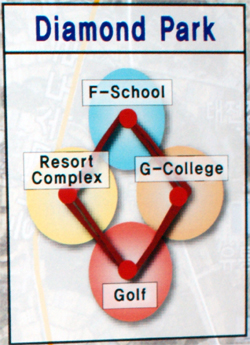 종합관광단지 조성을 위한 첫걸음인 박세리 골프 파크는 박세리 대학원 대학교가 위치하는 G-Colleage ▲외국인 초·중·고등학교가 위치하는 F-School ▲대학원 학생들이 골프를 연습할 수 있는 골프존 ▲기숙형 콘도 즉 유스호스텔 형태의 숙박공간이 위치하는 Resort Complex 등으로 구성된다.