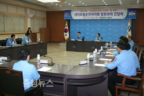 대전 대덕구(구청장 정용기)는 11일 구청 중회의실에서 대덕모범운전자지회 변영희 회장등 임원 13명을 초청해 간담회를 가졌다.