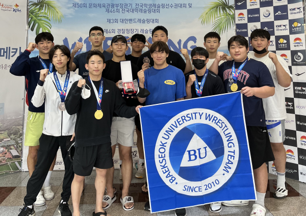 백석대 레슬링팀은 그레코로만형 55kg급에서 이효빈(22, 남), 130kg급 진준(20, 남)이 각각 1위로 금메달을 차지했고, 60kg급 김찬호(23, 남)와 97kg급 김승우(21, 남)가 3위로 동메달을 따냈다.
