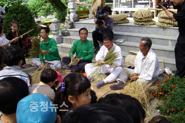 ▲ 오박사마을에서 아이들이 빗자루 만드는 모습을 바라보고 있다.