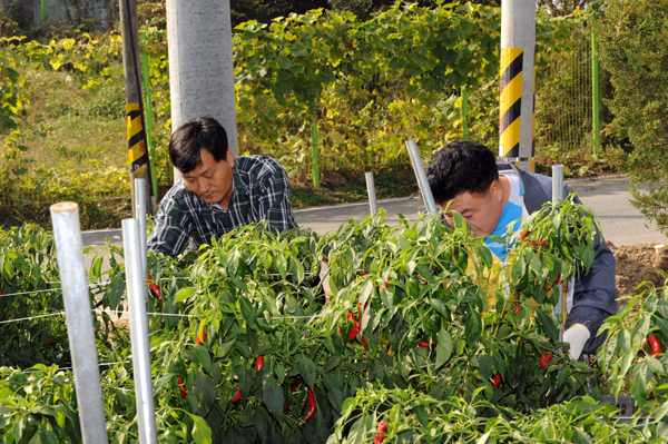 구의원 및 직원 등 20여명 관내 미수확 고추밭 방문해 구슬땀
