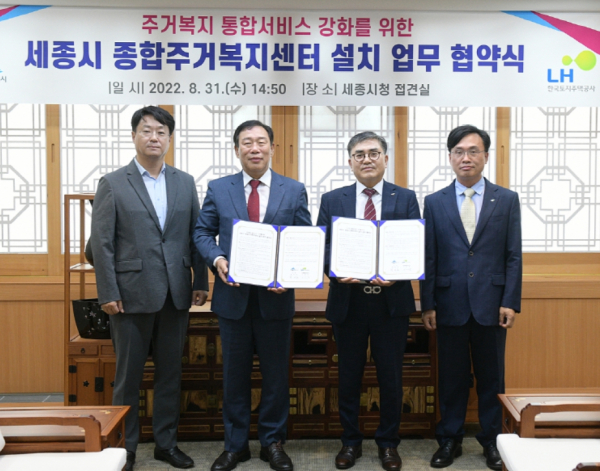 [충청뉴스 최형순 기자] 세종시는 LH세종특별본부와 손을 잡고 ‘세종시 종합주거복지센터’를 설치, 가구별 복합적인 주거문제를 원스톱으로 해결하는 주거복지 통합서비스 제공에 나선다.