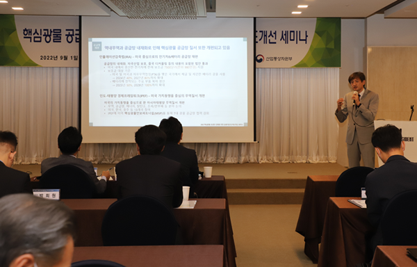 이번 세미나는 산업부와 자원개발 주요기관은 물론 무역보험공사, 해외자원개발협회, 무역협회 등 금융‧투자기관과 전기차 및 배터리‧희토류 수요기업도 참여해 △핵심광물의 개발과 지원 제도 △무역보험 활용방안 △투자 및 펀드조성 등 실질적인 금융지원 대책과 협력 방안을 도출했다는 점에서 차별성이 있다.