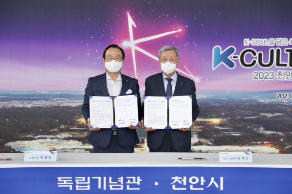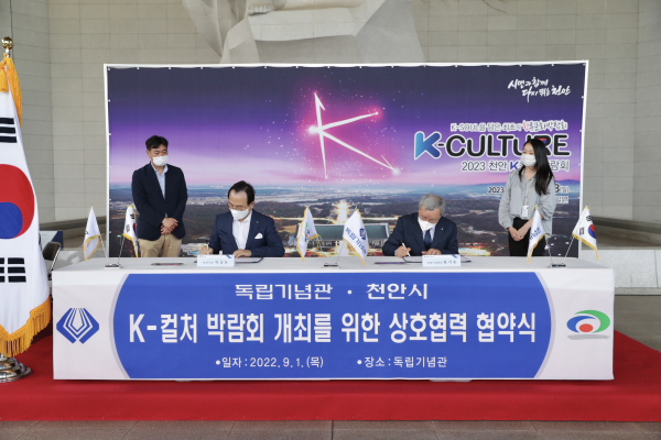 천안시는 독립기념관과 1일 독립기념관 겨레의 집 앞에서 ‘K-컬처 박람회’ 개최 상호협력을 위한 양해각서를 체결했다.