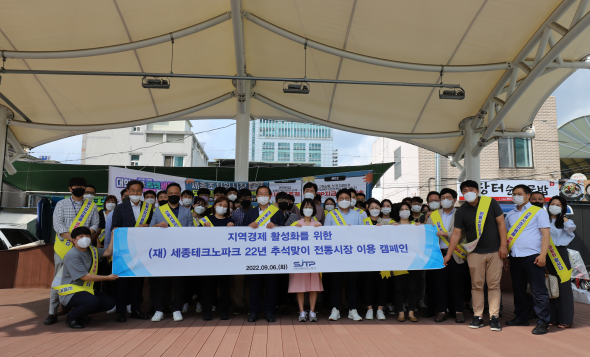 한편, 세종TP 김현태 원장은 “전통시장 상인들은 명절 대목을 앞두고도 코로나19 재확산과 고물가로 인한 소비위축 등으로 그 어느 때보다 어려운 시기를 보내고 있다” 면서 “추석 명절을 준비하는 임직원에게 침체된 전통시장에 활기를 불어넣는데 동참해주시길 바란다” 고 당부했다.