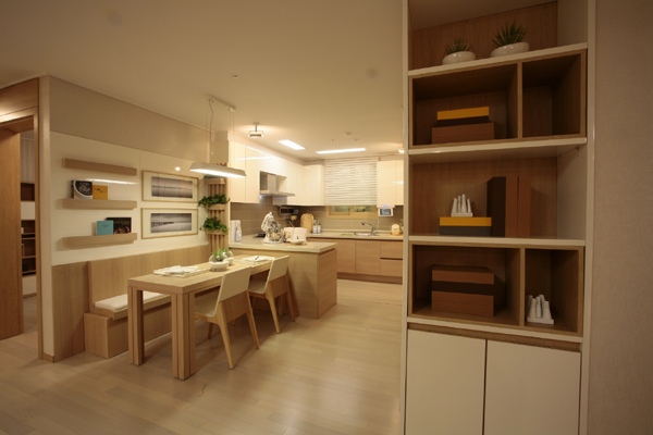 거실과 주방이 연결된 LDK 구조로 설계해 가족 간의 공동 공간을 보다 넓게 활용할 수 있도록 했다. 더욱이 자녀방에 워크인 수납장을 설치해 수납공간을 넉넉히 했으며, 안방에 파우더 룸을 비롯해 후면 드레스룸 설계로 수납공간을 극대화 했다.
