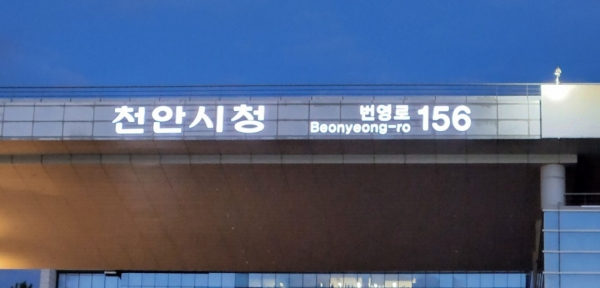천안시청 LED 건물번호판, 야간에도 '반짝'