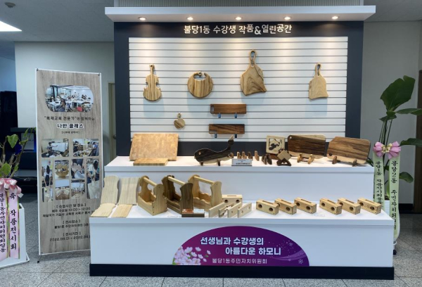 정해선 불당1동장은 “이번 목공 전시회로 수강생들이 학습에 대한 성취감을 느끼고 더 많은 사람이 목공에 쉽게 접근할 수 있는 시간이 되길 바란다”고 말했다.