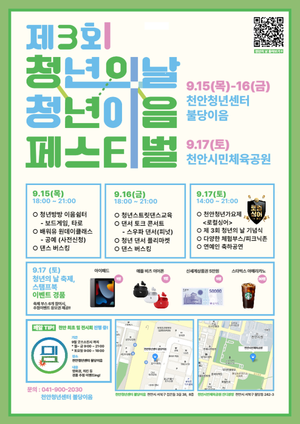 [충청뉴스 박동혁 기자] 충남 천안시가 제3회 청년의 날을 맞아 오는 15일부터 17일까지 천안청년센터 불당이음과 천안시민체육공원에서 청년의 날 및 청년주간 행사 ‘청년 이음 페스티벌’을 개최한다.