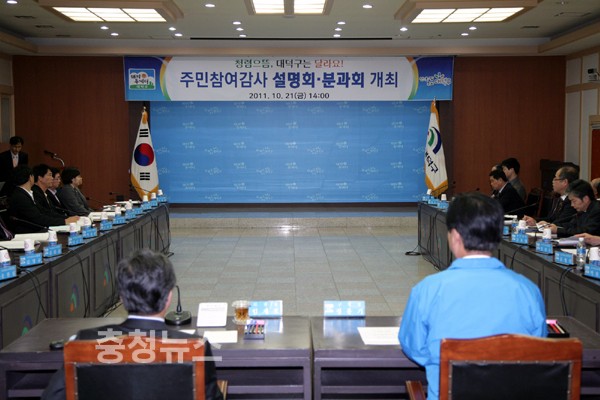 대전 대덕구(구청장 정용기)는 지난 21일 구청 중회의실에서 주민참여감사단, 관계자 등 30여명이 참석한 가운데 주민참여감사제 설명회를 개최했다.