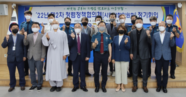 [충청뉴스 최형순 기자] 세종경찰청(청장 손장목)은 14일 교수, 변호사, 시민단체, 언론인 등 외부전문가들이 참석하는 ‘2022년 제2차 세종경찰청 청렴정책협의체 정기회의’를 개최했다.
