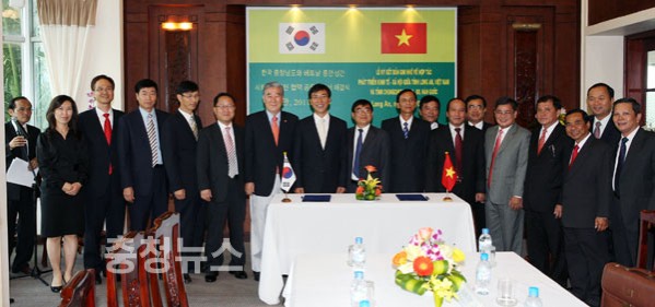 ▲ 안희정 충남도지사와 도흐럼 롱안성 성장이 공동성명을 채택하고 기념촬영을 하고 있다.
