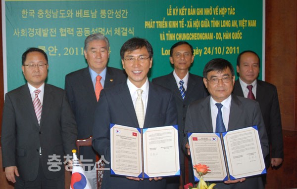 지난 20일부터 아시아 3개국 순방에 나선 안희정 충남도지사는 24일 베트남 롱안성을 방문, 도흐럼 성장과 ‘사회발전 경제협력 공동성명’을 채택했다.