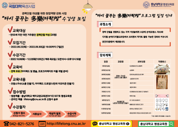 충남대 평생교육원, 경력단절 여성 위한 무료 창업 교육