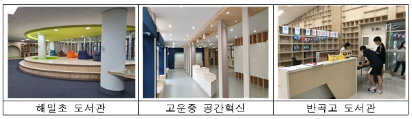 해밀초의 경우 도서관에 접이식 창을 둘러 중정을 품을 수 있게 했고, 고운중의 경우는 도서관과 별도로 홈베이스를 공간 혁신해 독서와 토론이 가능하도록 했다.