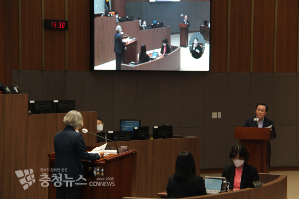 [충청뉴스 김정식 기자] 김명숙 충남도의원(청양·민주)과 김지철 충남교육감이 27일 도의회 본회의장에서 설전을 펼쳤다.