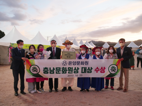 [충청뉴스 박동혁 기자] 충남 아산시 온양문화원(원장 정종호)이 지난 23~24일 이틀간 청양백세건강공원에서 개최된 충남도민문화의날 기념식 및 충남생활문화축제에서 ‘2022 충남문화원상 대상’을 수상하는 쾌거를 이뤘다.