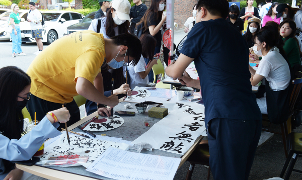 이와 함께 공자아카데미 교수진과 중국학과 학생들이 △중국식 매듭을 이용한 팔찌 만들기 △서예로 나만의 부채 만들기 △중국의 전통 공예 전지 만들기 △전통 놀이인 중국 제기 체험 등 학생 눈높이에 맞는 문화 체험 프로그램과 탕후루, 차예단, 나이차 등 중국 대표 음식 체험 프로그램을 운영해 학생들의 뜨거운 호응을 얻었다.