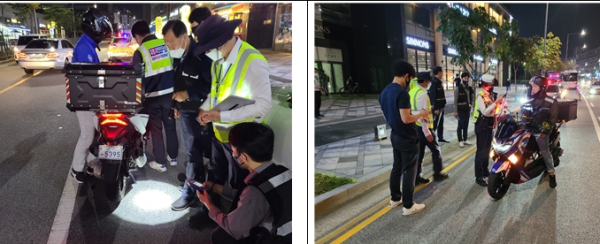 특히, 오토바이의 인도주행, 심야시간 소음 유발 행위에 대한 단속과 함께, 전동킥보드 무면허 운전자의 적발도 8건에 이르고 있어 주의가 요구된다.