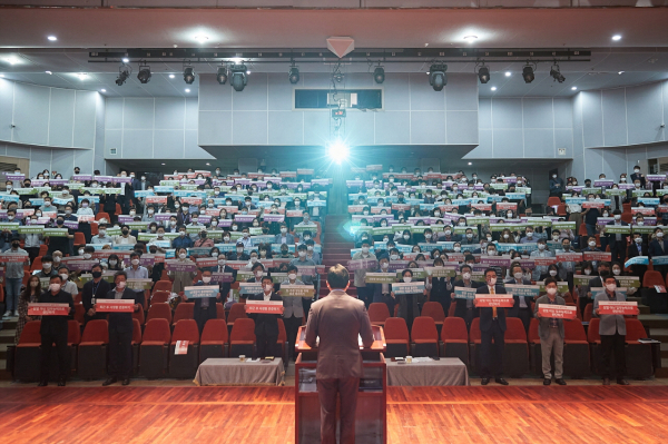 충남 아산시는 지난달 직장 내 양성평등 조직문화 조성을 위한 설문조사를 통해 직원들이 직접 선정한 10가지 약속 선포식을 지난 4일 시청 시민홀에서 진행했다.