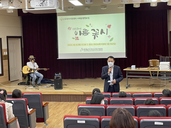 [충청뉴스 박동혁 기자] 충청남도아산교육지원청 교육복지지원센터는 지난 6일 사제동행멘토링 프로그램으로 ‘이름꽃시 드로잉 콘서트’를 개최했다.