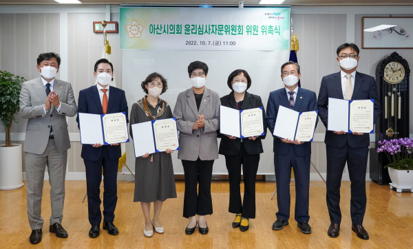 아산시의회는 7일 의장실에서 윤리심사자문위원회 위원 위촉식을 열고 위촉장을 수여했다.