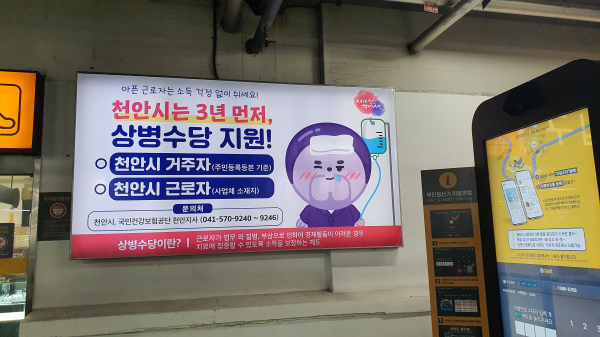 한편, 천안시는 근로자가 업무 외 질병, 부상으로 인해 경제활동이 어려운 경우 치료에 집중할 수 있도록 소득을 보장하는 제도인 상병수당 시범사업 지자체에 선정돼 3년 먼저 시행 중이다.